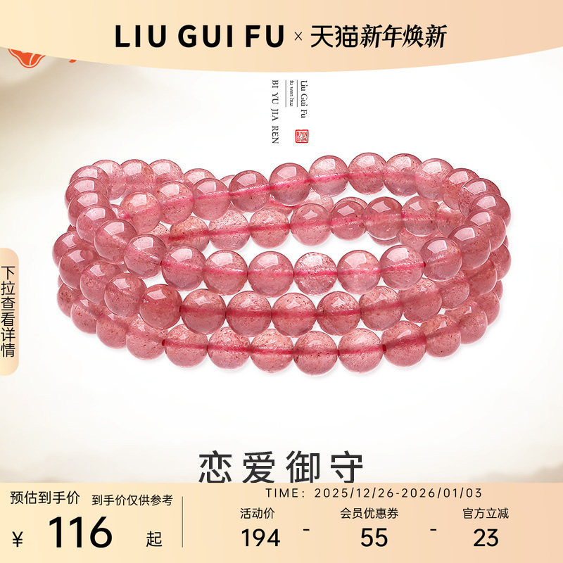 六桂福天然草莓晶水晶手链甜美小清新风串珠手串圣诞礼物