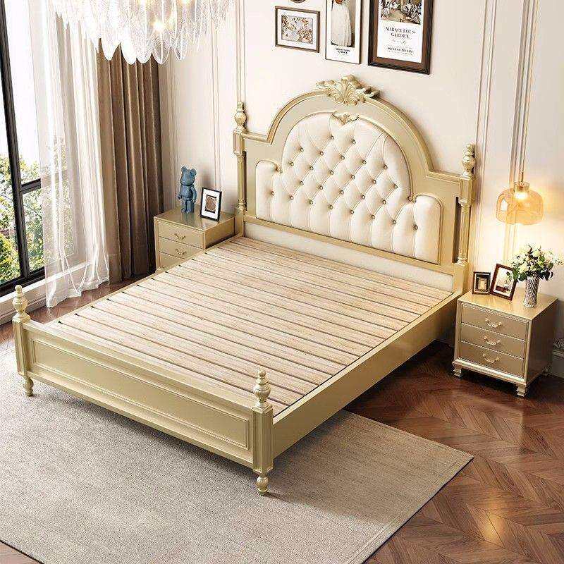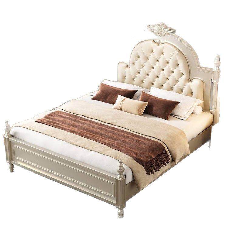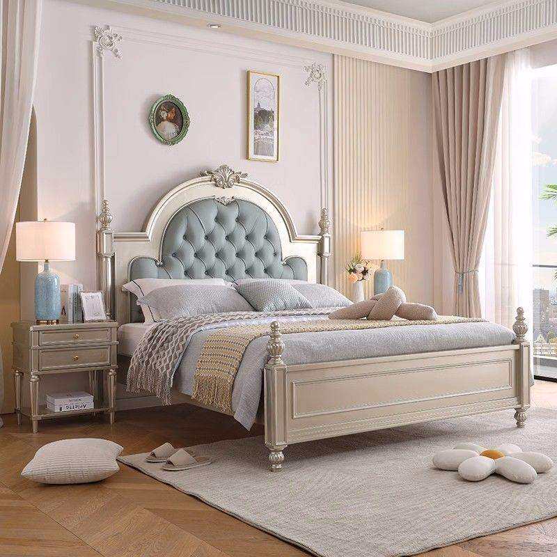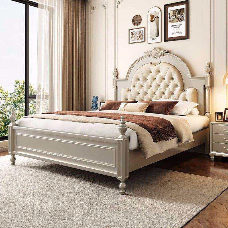 美式轻奢双人床主卧床法式实木布艺拉扣床公主床婚床罗马柱实木床