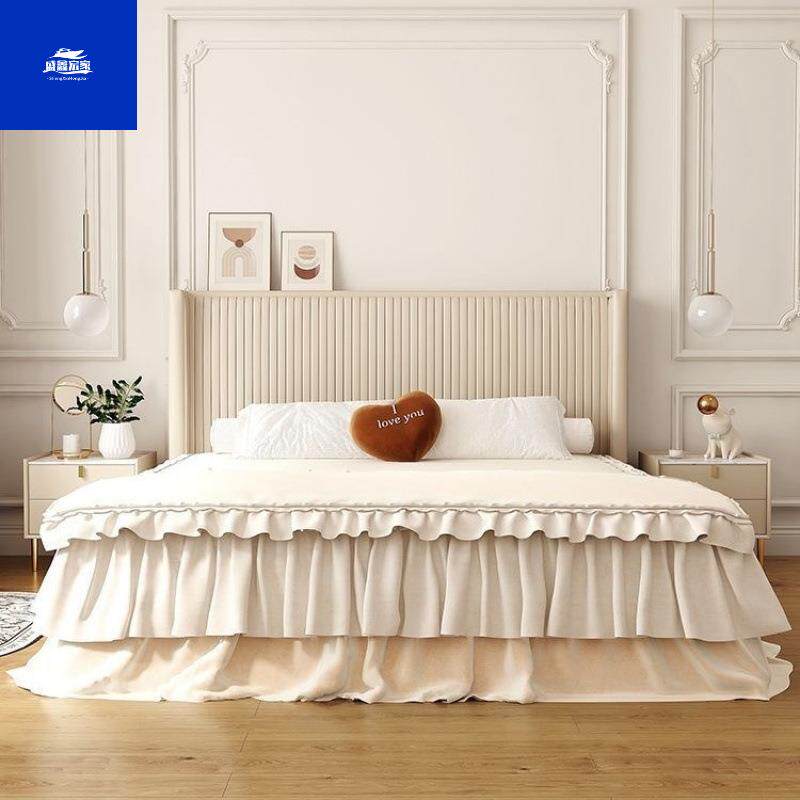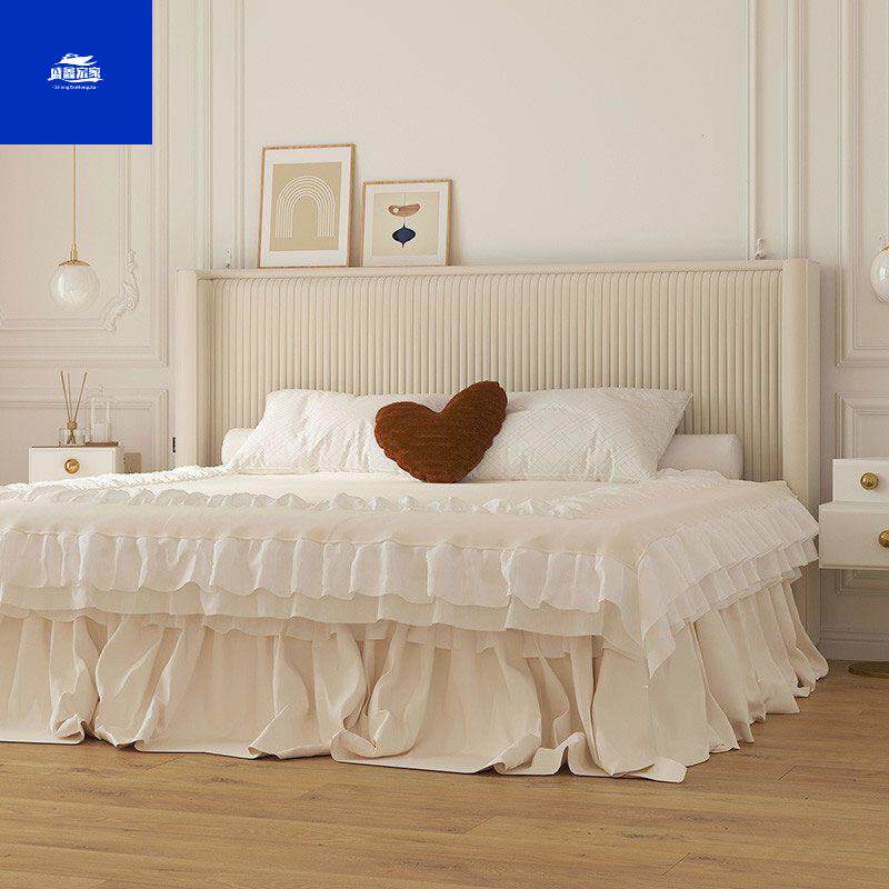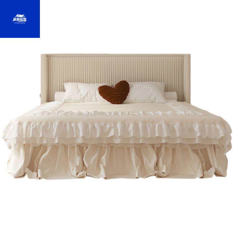 法式新款轻奢布艺百褶卧室大床现代简约极简科技布床北欧主卧婚床