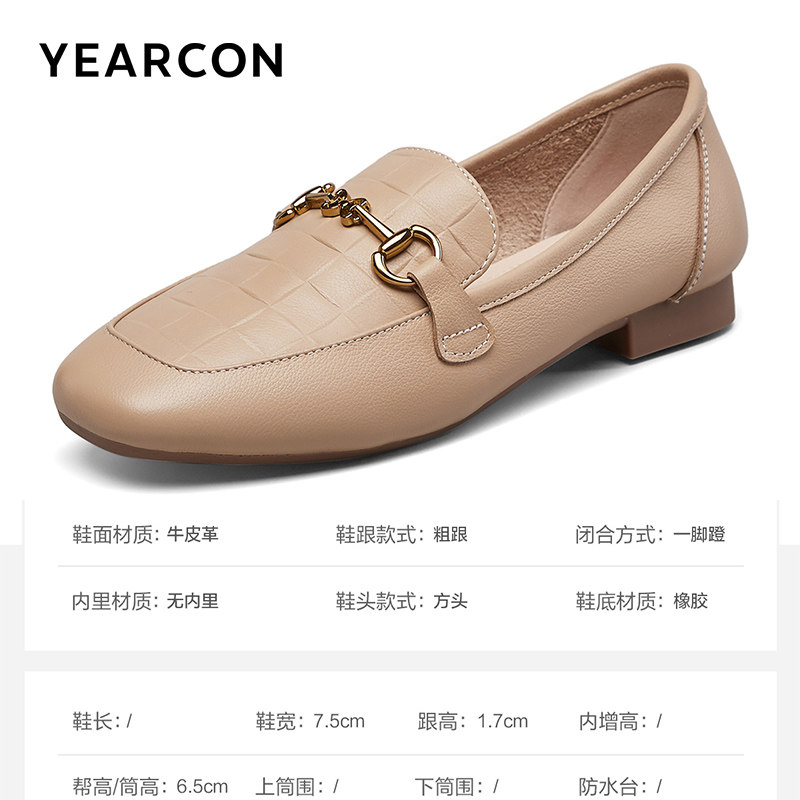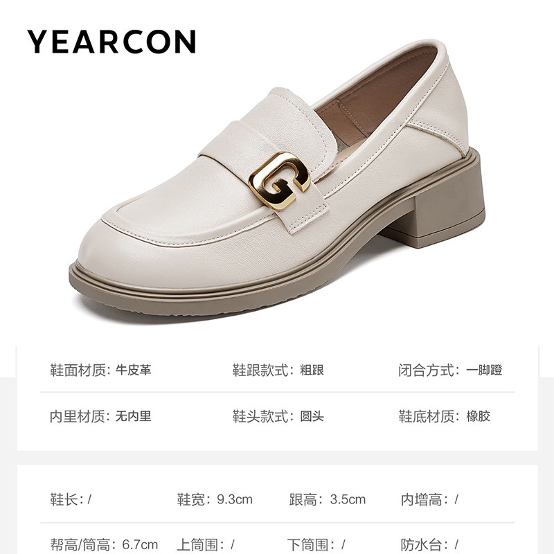 真皮~骄屿复古一脚蹬乐福鞋女厚底粗跟圆头单鞋百搭英伦风小皮鞋