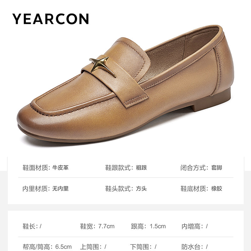 羊皮~棕色山茶花乐福鞋女2025新款通勤粗跟单鞋百搭英伦风小皮鞋