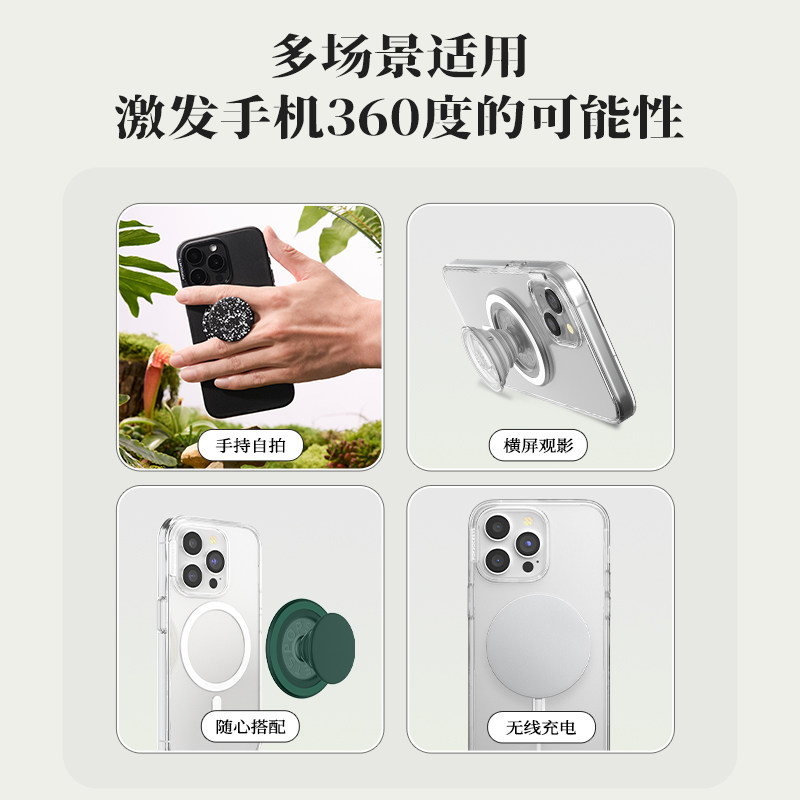 【自然图鉴】PopSockets泡泡骚磁吸式气囊手机支架苹果iPhone17/16ProMax/Pro 卡包 磨砂哑光 蓝色 墨黑 红色
