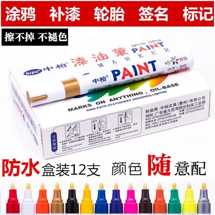 中柏油漆笔记号笔SP110粗3.0mm防水不掉色黄色白色轮胎补漆笔