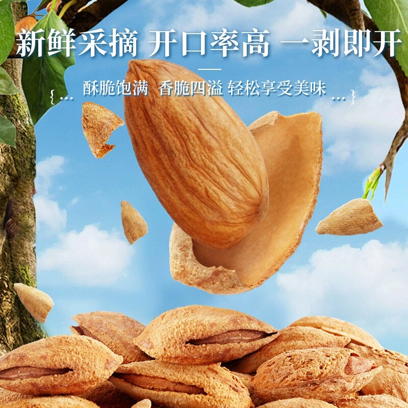 巴旦木500g袋装原味无添加手剥扁桃杏仁坚果新货奶香味官方旗舰店