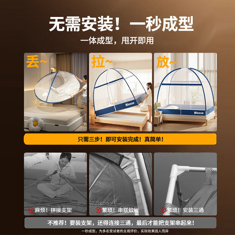 蚊帐免安装可折叠蒙古包家用卧室防摔儿童2025年新款全包式防蚊帐