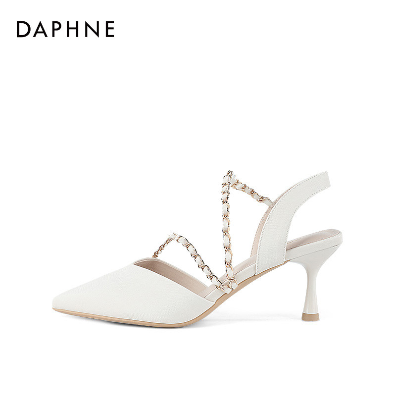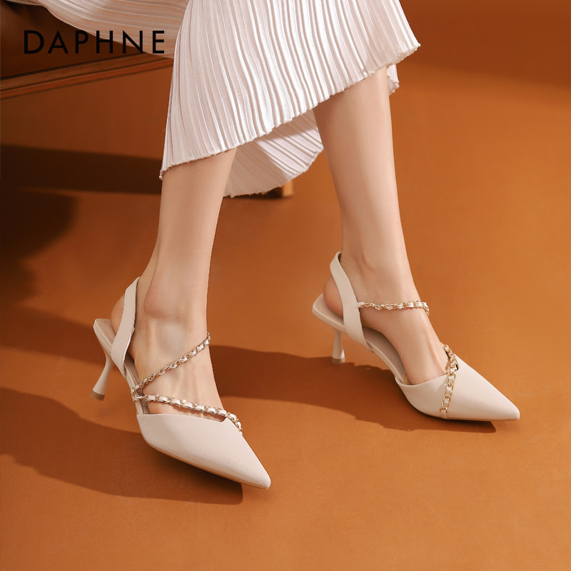 达芙妮高跟凉鞋女夏2025新款链条凉鞋女夏仙女包头细跟尖头高跟鞋