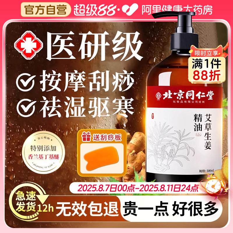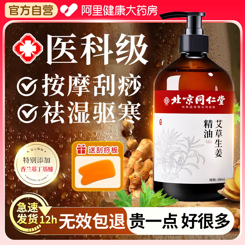 同仁堂生姜艾草按摩精油全身体通经络排祛去除湿寒气刮痧发热免洗