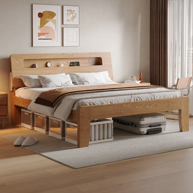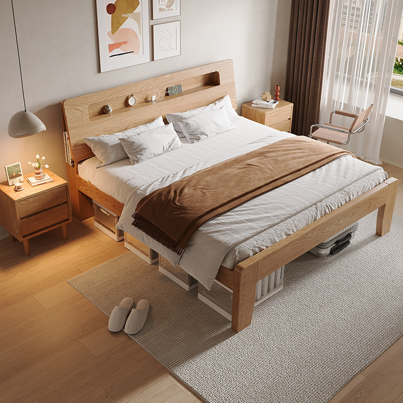现代简约实木床1.8米主卧双人床1.5M单人经济型高箱储物大床