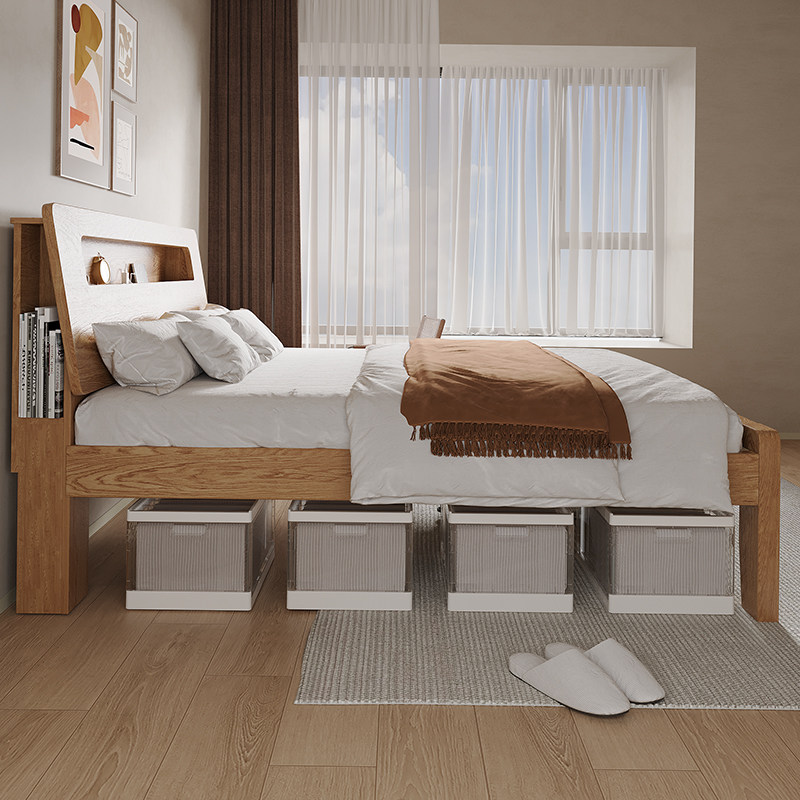 橡木高脚床实木床1米5主卧高端大气1.8米床离地高床底可储物床
