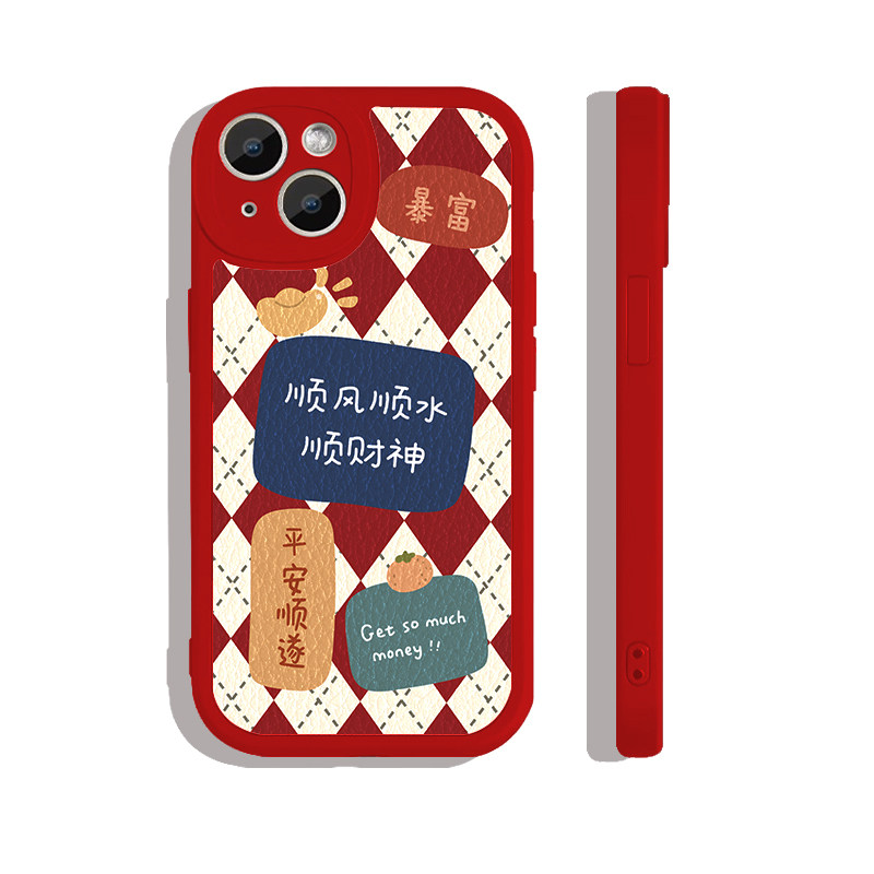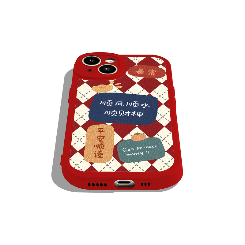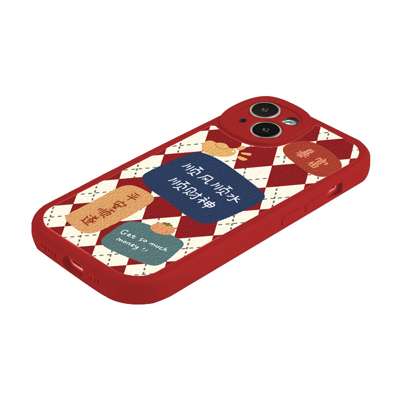 红色小羊皮棋盘格新年蛇年全包手机壳适用苹果17nova14华为p70/mate70小米15reno14vivo30荣耀300iPhone15