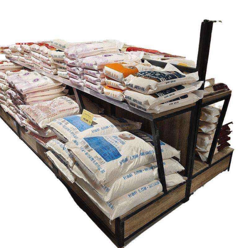 超油米面粮油展柜靠135市墙钢木五谷杂展粮货架多层粮展架多功能