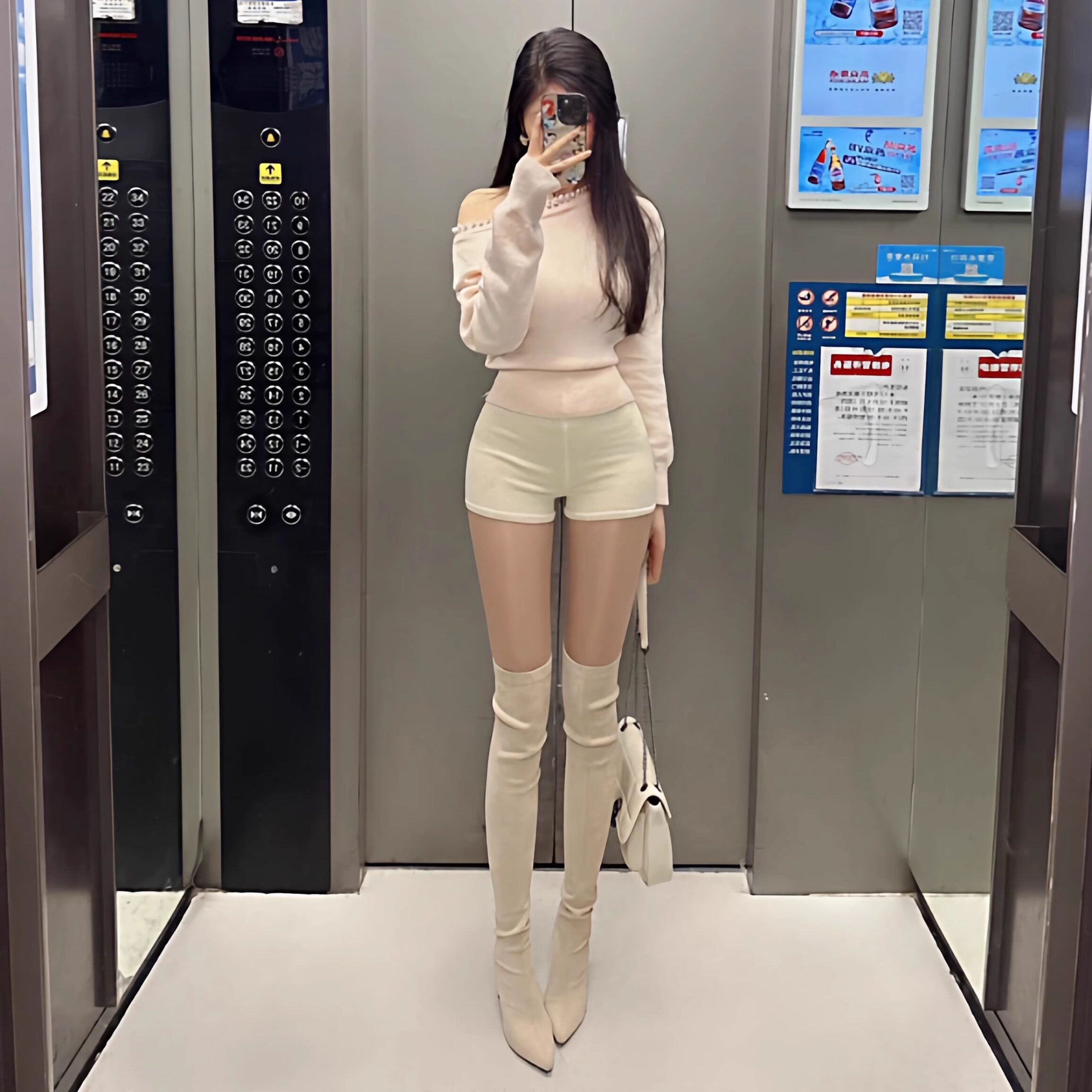 吴大叔2025秋冬季新款靴子女款美拉德尖头高跟女靴弹力短靴瘦瘦靴