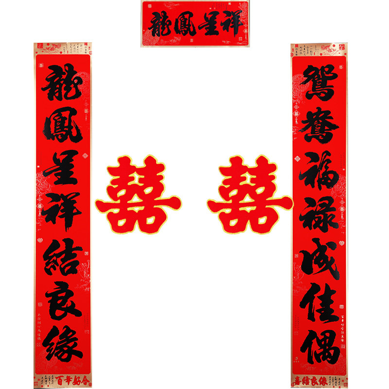 结婚对联男方大门喜联婚联新婚女方出嫁婚庆结婚用品入户门婚礼