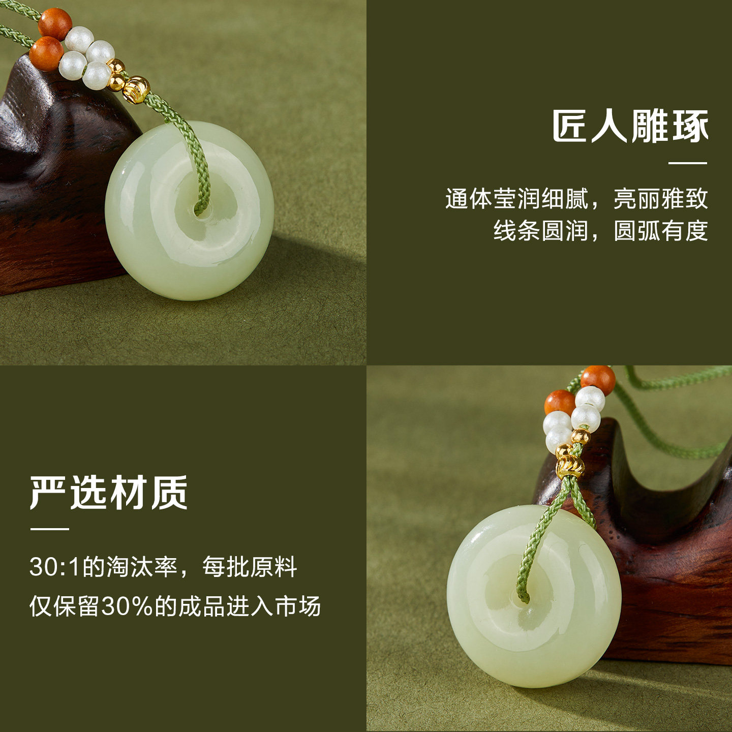 周大生和田玉平安扣吊坠玉石项链本命年挂坠玉佩生日礼物送男朋友