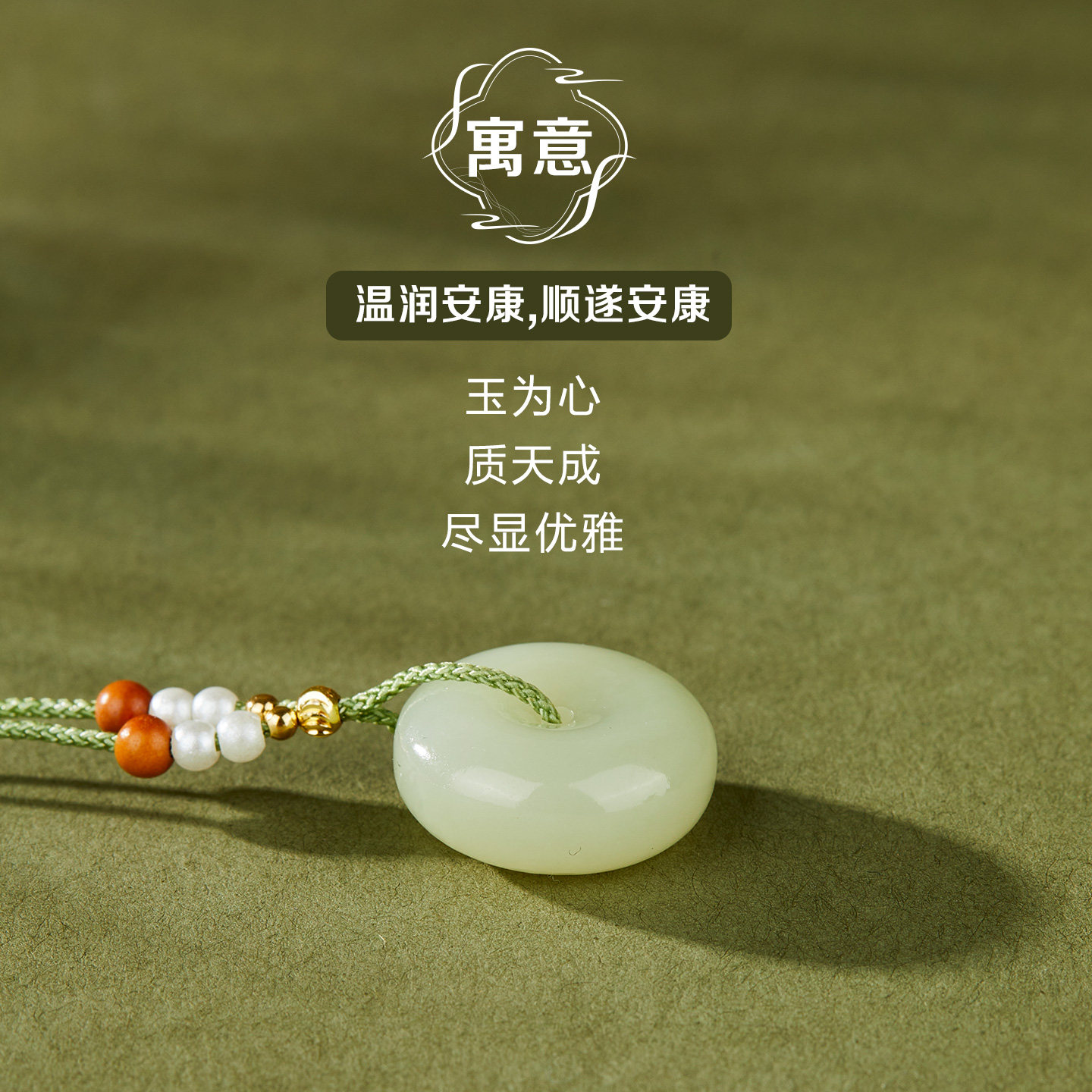 周大生和田玉平安扣吊青玉石项链本命年女编绳挂坠生日礼物送女友