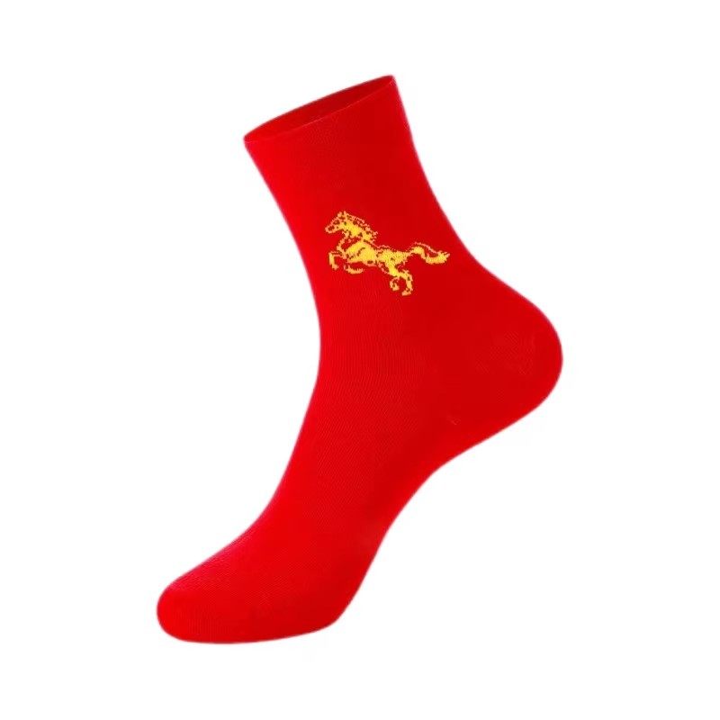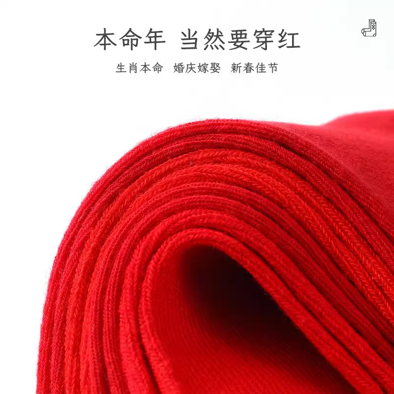 本命年大红袜子马年红袜福字袜结婚男女情侣棉袜中筒秋冬款本命年