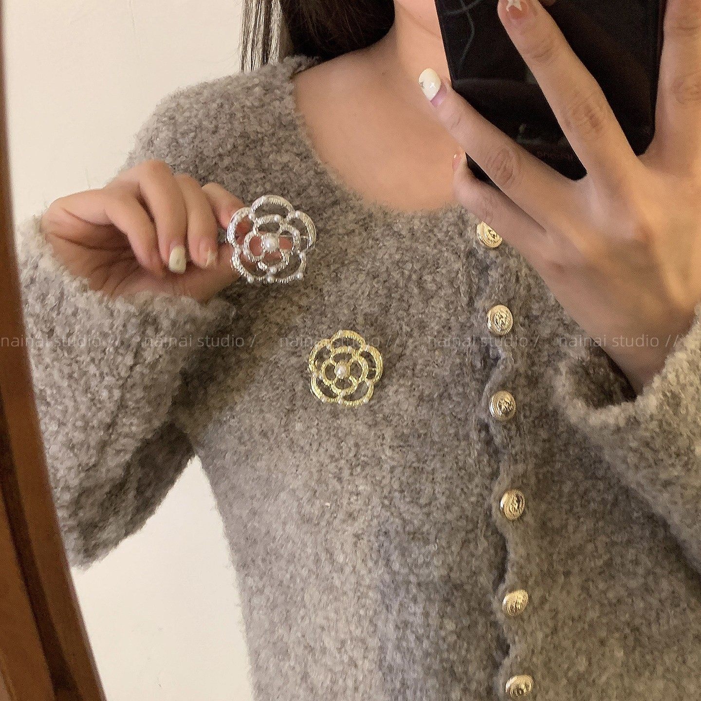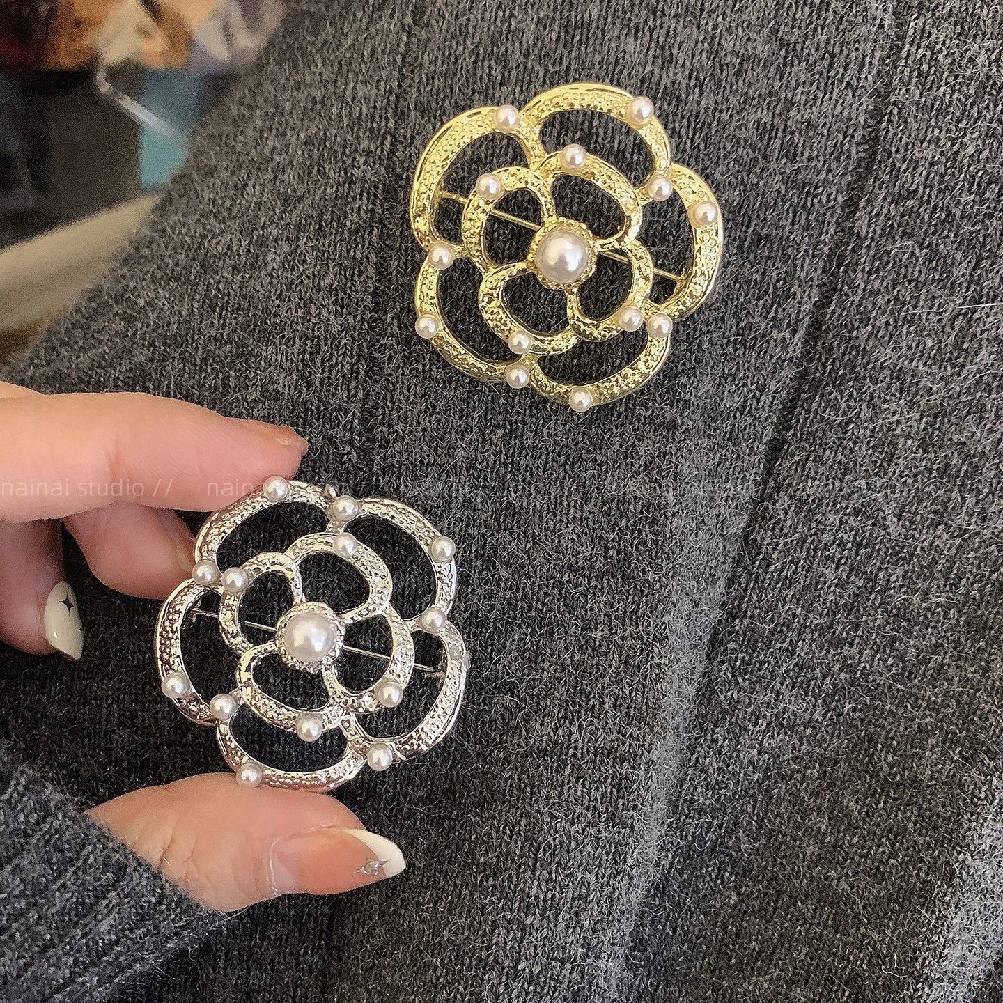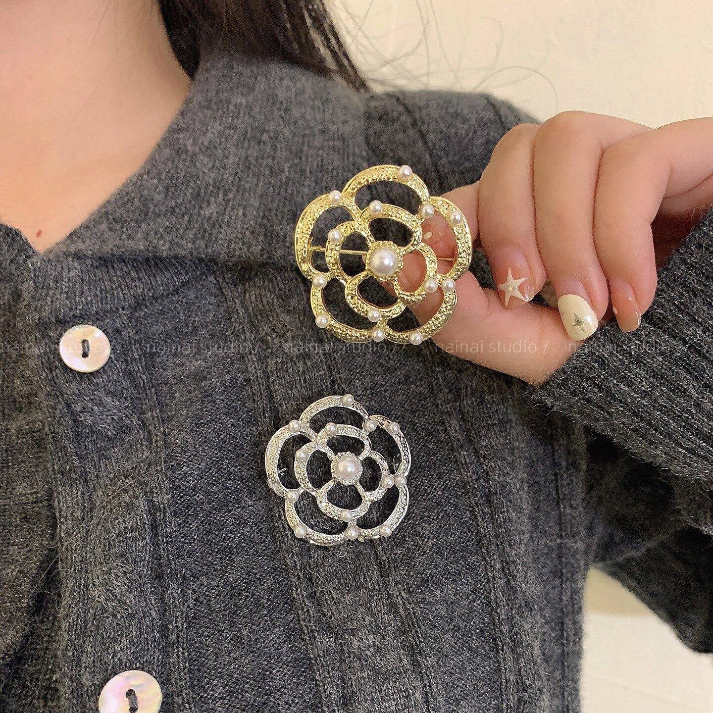 珍珠山茶花胸针~高级感复古法式小香风胸花大衣外套别针配饰女冬