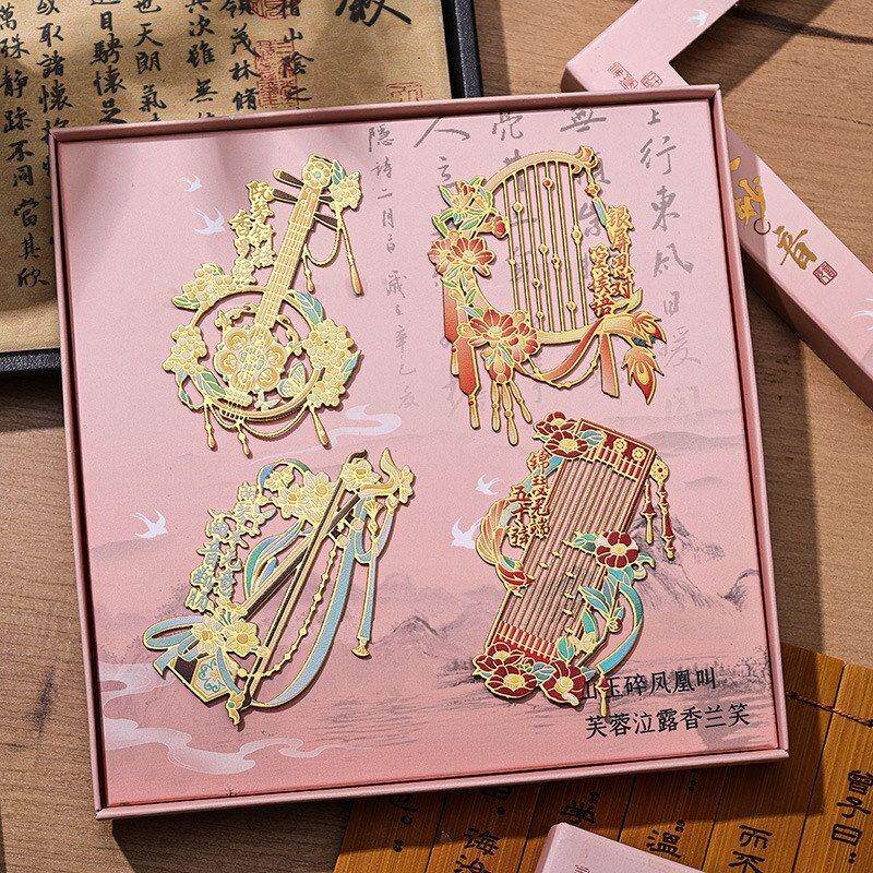 金属书签礼盒古典中国风 华夏妙音系列 高颜值非遗古琴精美书扣