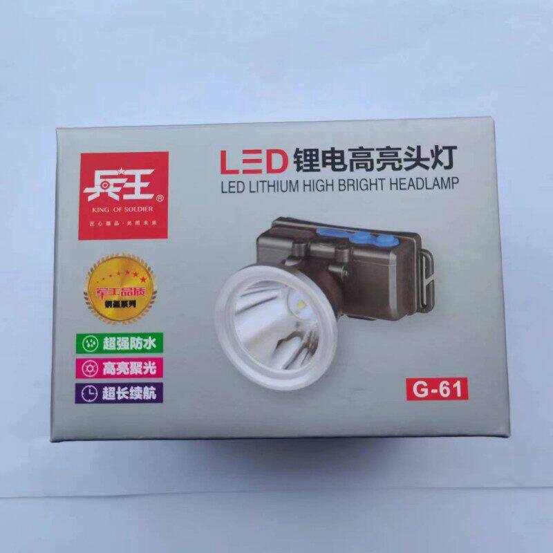 兵王G-61超亮大容量锂电头灯强光户外夜钓鱼登山照明充电头灯头戴