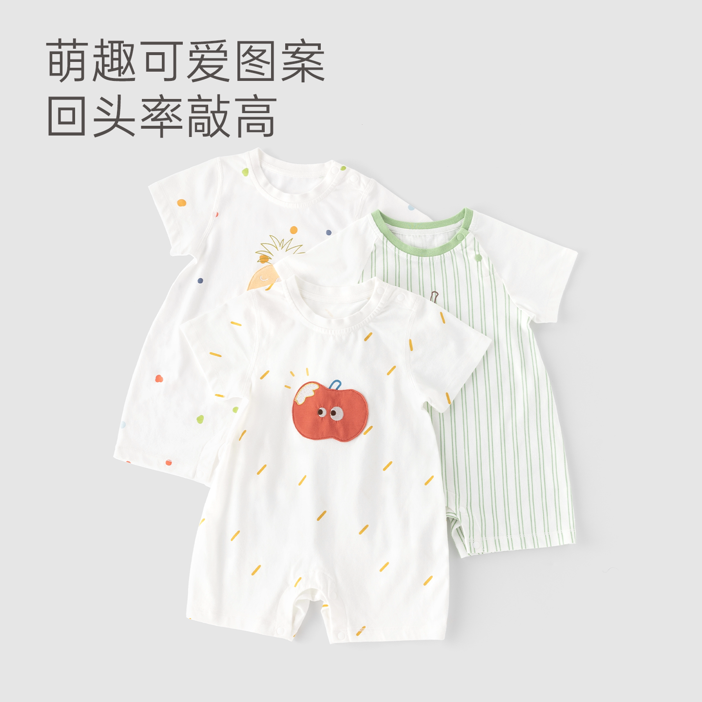 木生棉宝宝短袖连体衣夏季薄款婴儿纯棉哈衣可爱水果爬服透气夏装
