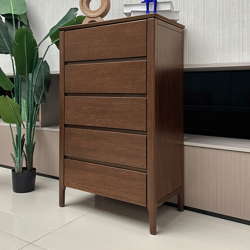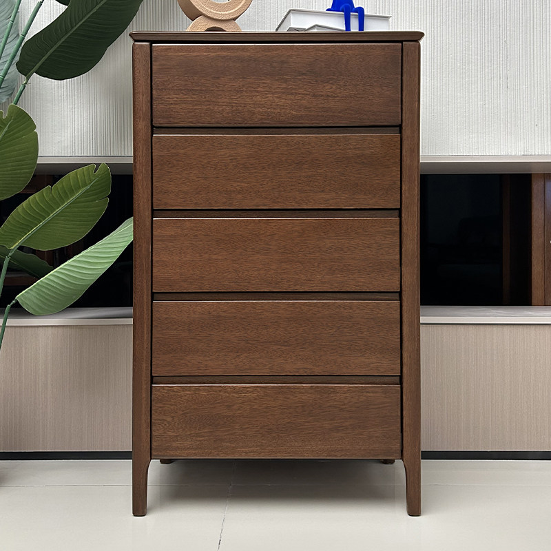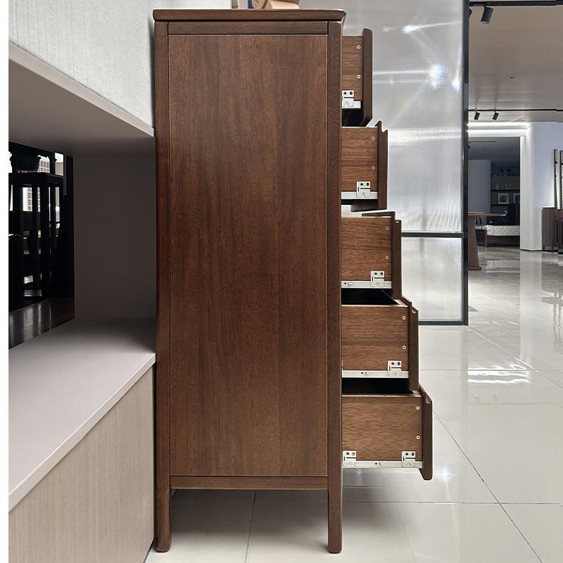 全实木五斗柜收纳柜卧室胡桃木客厅现代简约斗橱电视旁储物抽屉柜