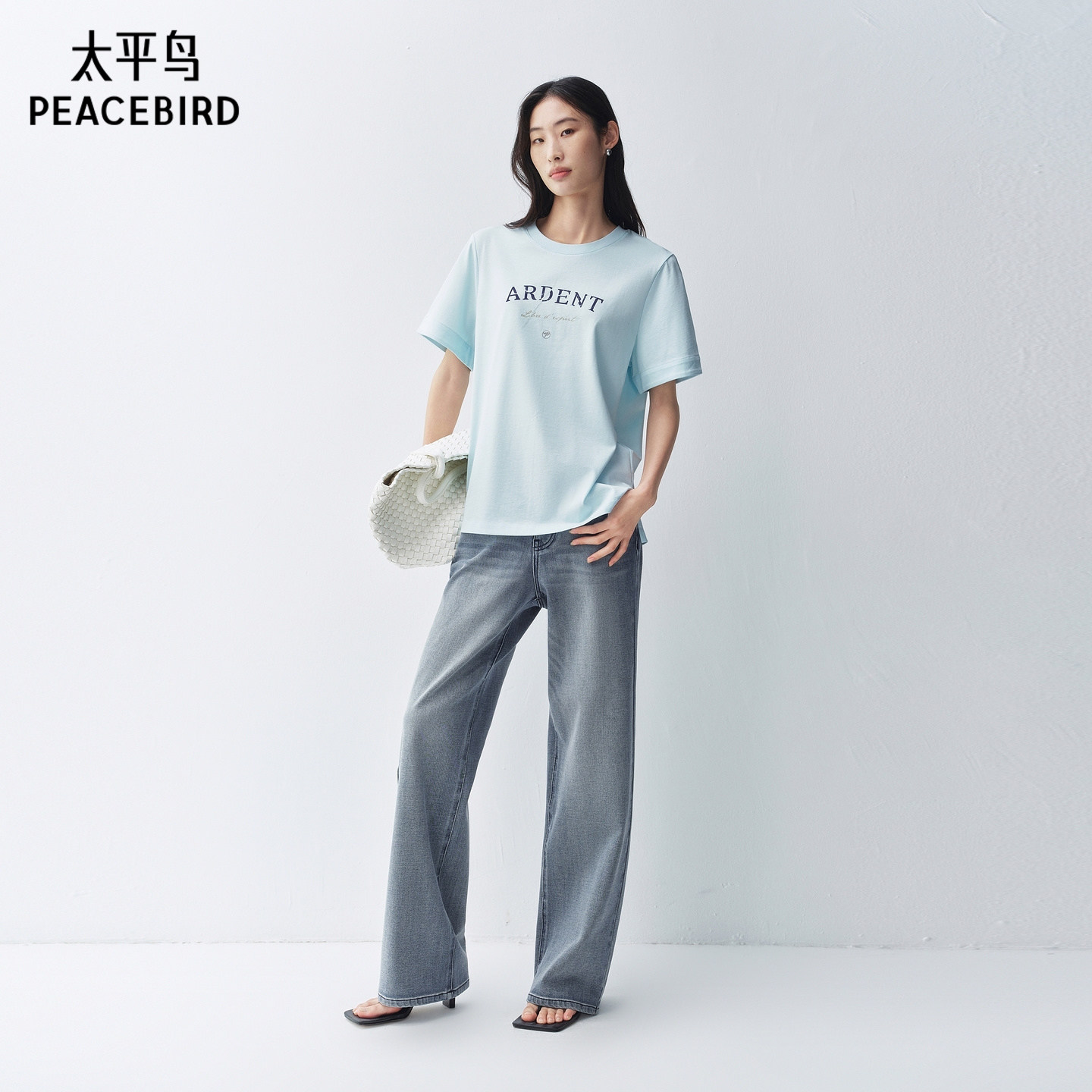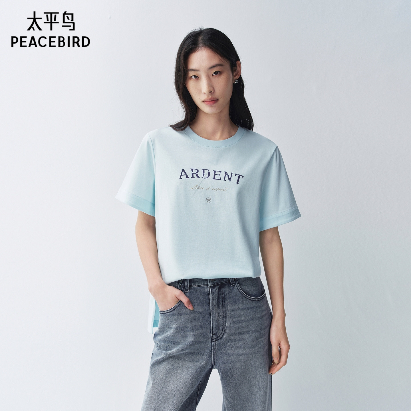 【商场同款】太平鸟夏新亚麻混纺植绒字母宽松短袖T恤A1CNG2229