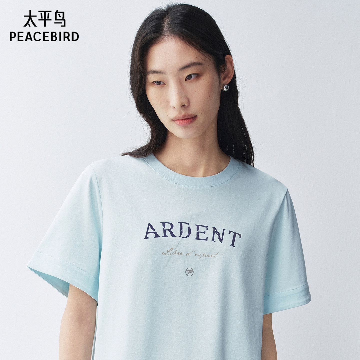 陈都灵丨凉感T森马短袖T恤女修身纯色基础夏季新款圆领白色女装