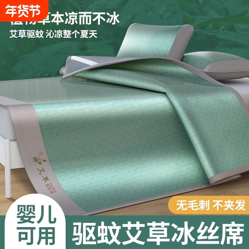 艾草冰丝凉席夏天2025新款学生宿舍单人天然藤席竹席草席软席夏季