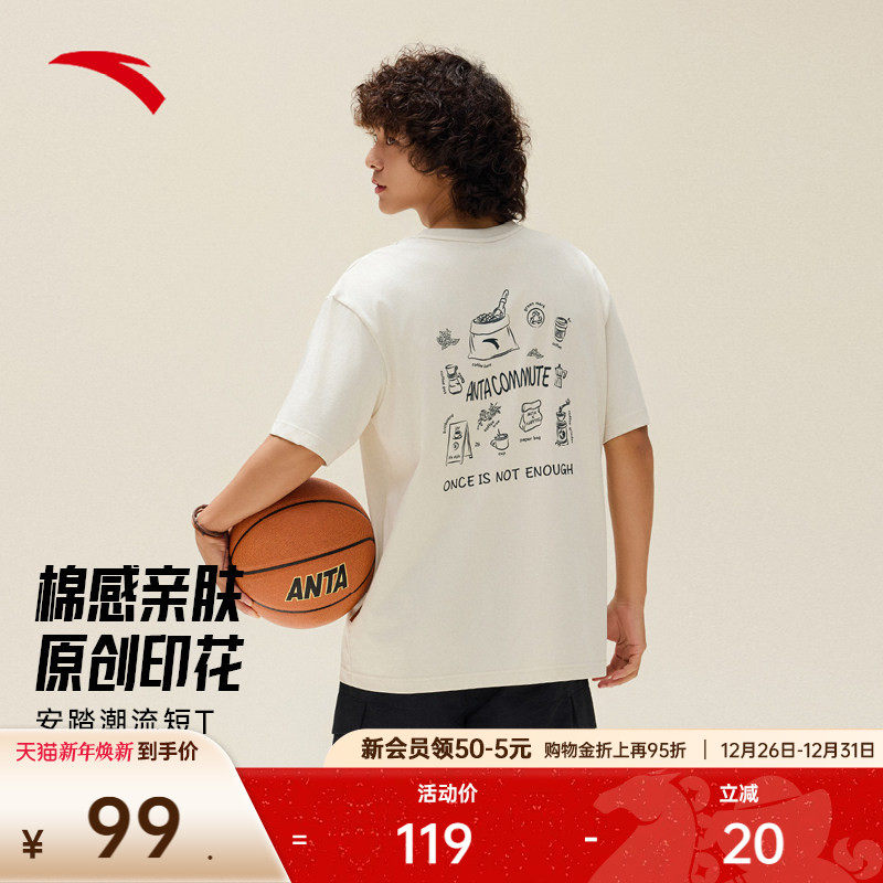 安踏短袖t恤男装2025夏季新款潮流印花休闲针织运动上衣152537137
