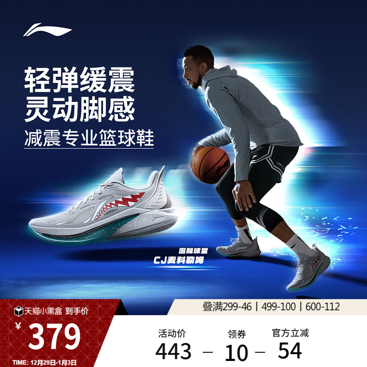 李宁轻速3 Mid丨篮球鞋中帮男鞋减震轻量秋季新款专业实战运动鞋