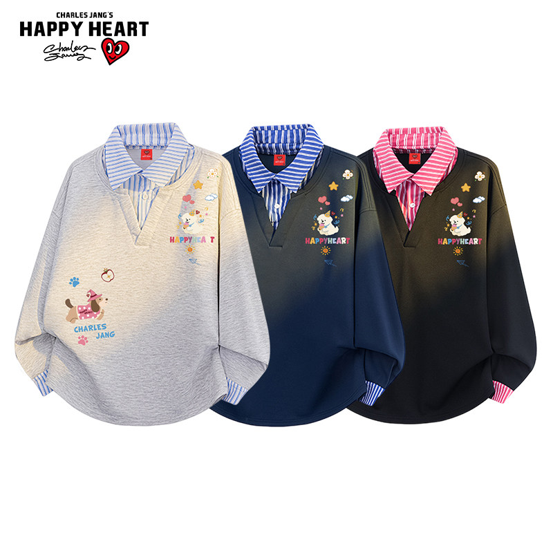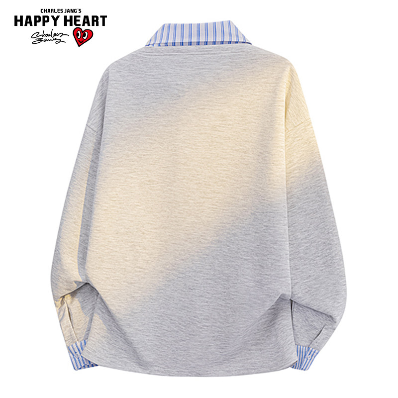 查尔斯桃心涂鸦领带假两件衬衫领卫衣男女秋冬季情侣宽松休闲上衣