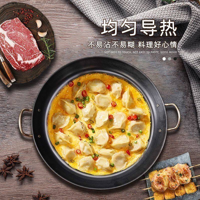 双耳烙锅烧烤一体锅平底罗锅家用商用摆摊专用不粘铁板烤盘大煎锅