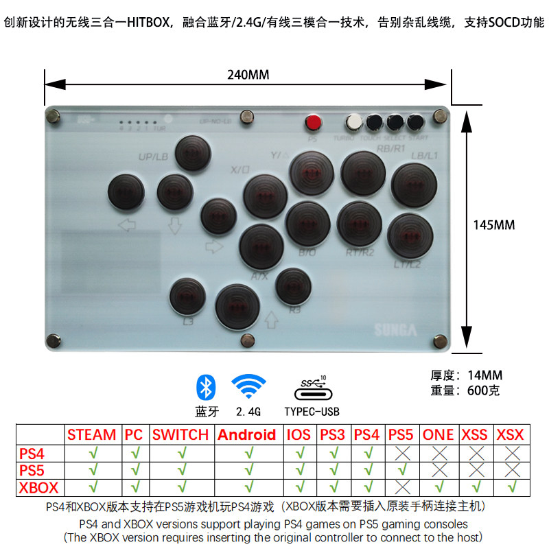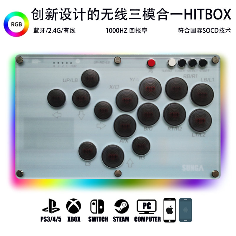 无线HITBOX PS5 XBOX 蓝牙2.4G SOCD 街霸6 STEAM SWITCH2 键盘