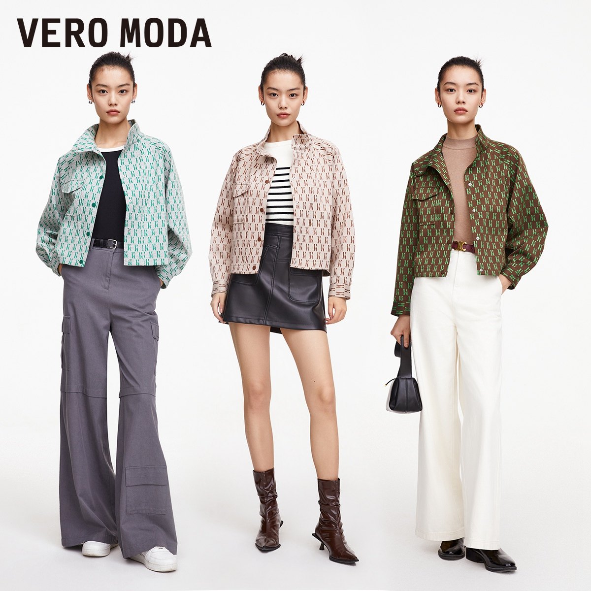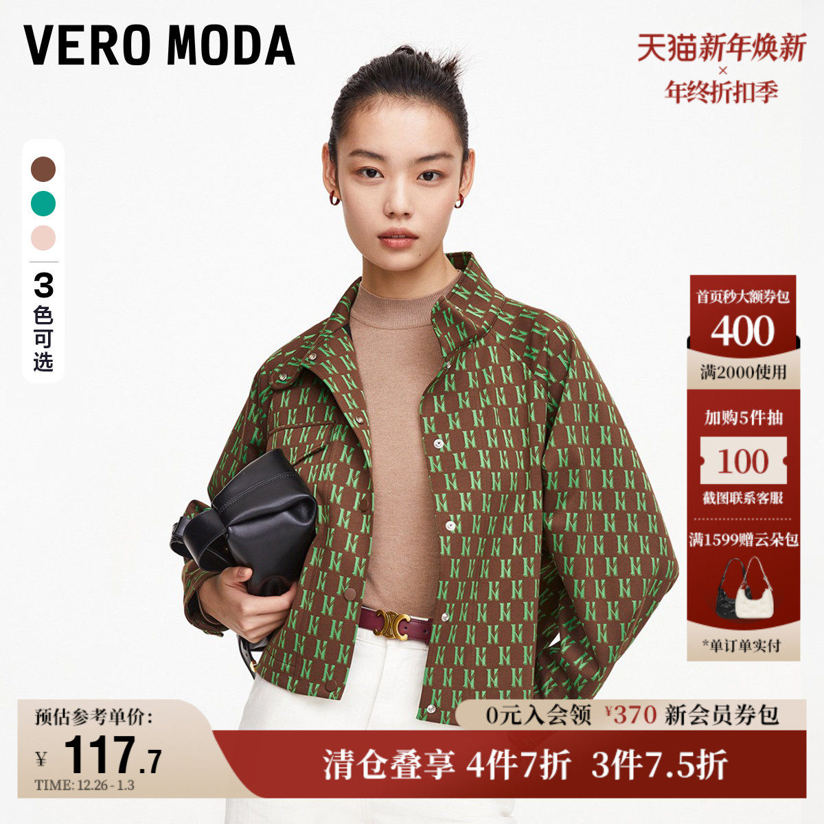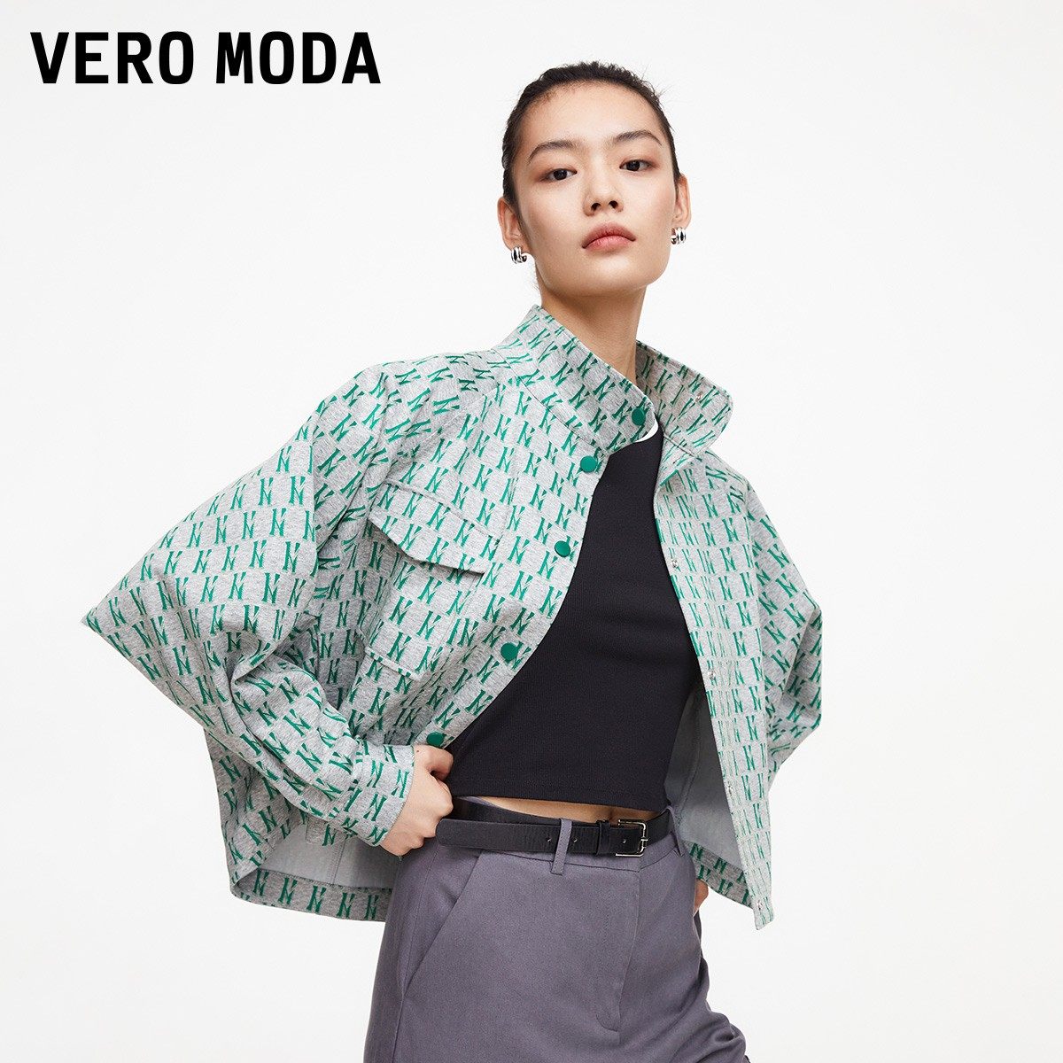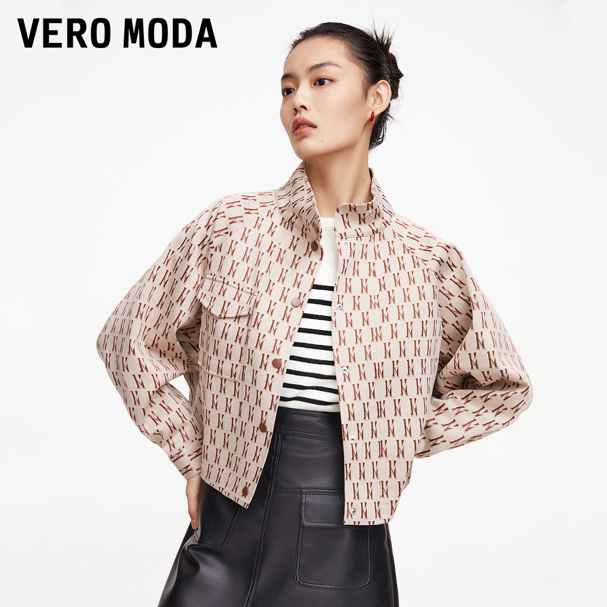 Vero Moda奥莱夹克外套新款女秋季H版型高领气质时髦复古印花上衣