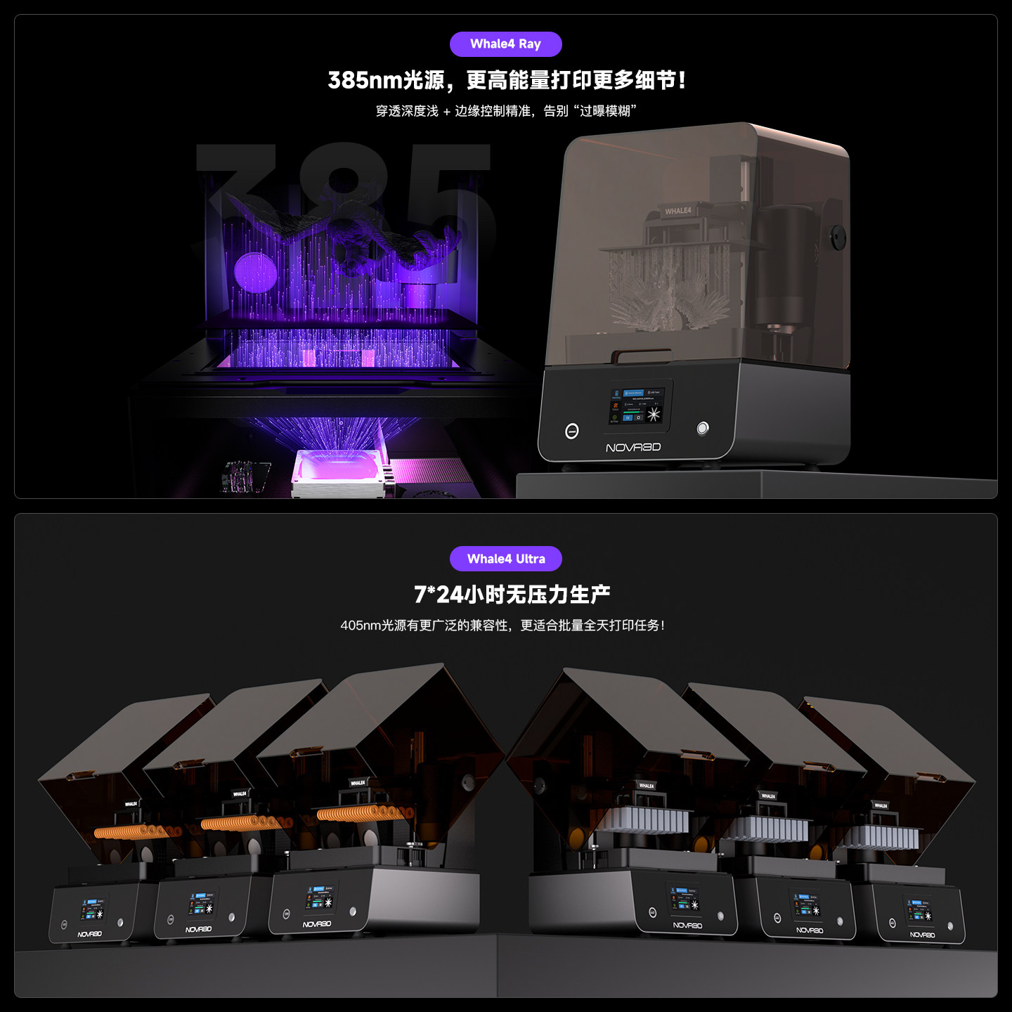 Nova3D/诺瓦3D Whale4 鲸4光固化3D打印机器 16K高精度10寸385波长 405波长高精度3D立体打印机机器手办模型