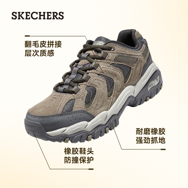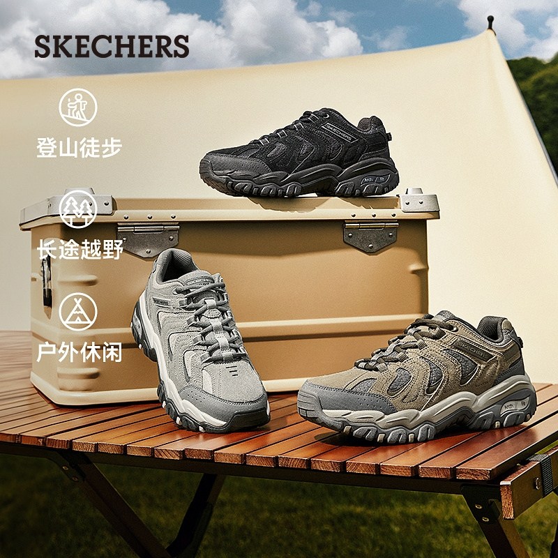 斯凯奇醒山|春季男子舒适休闲鞋户外厚底徒步鞋足弓支撑运动鞋