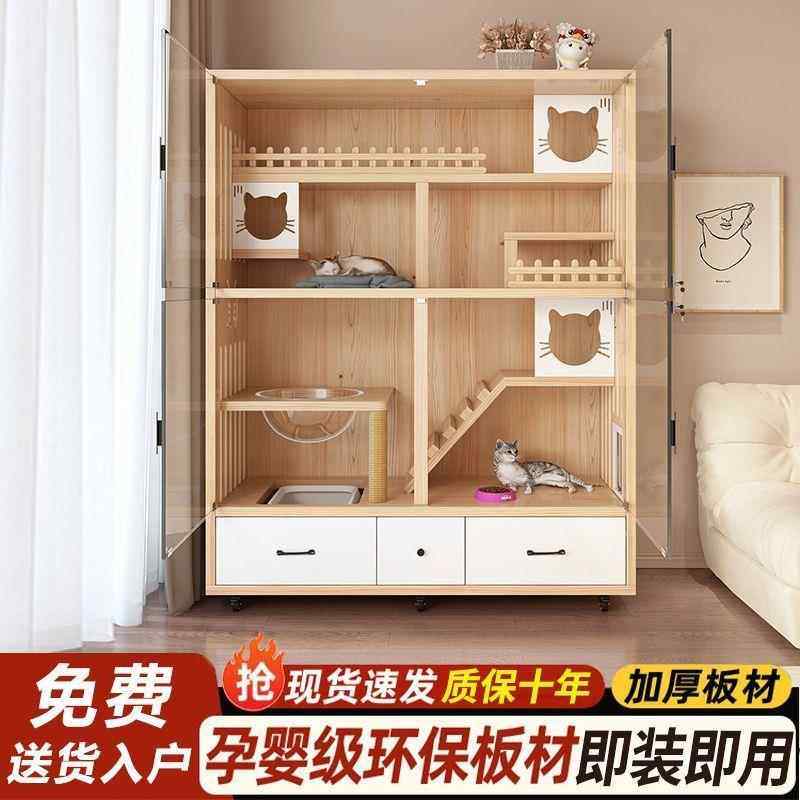 猫别墅实木空间豪华猫笼子猫舍猫屋家用室内猫咪房子猫窝猫柜