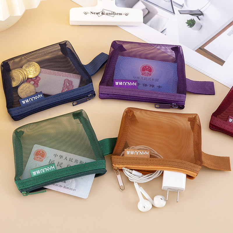 透明网纱收纳袋小号迷你零钱包分类收纳袋钥匙包公交卡包尼龙便捷透视轻便卡片旅行小卡袋口红多功能收纳包