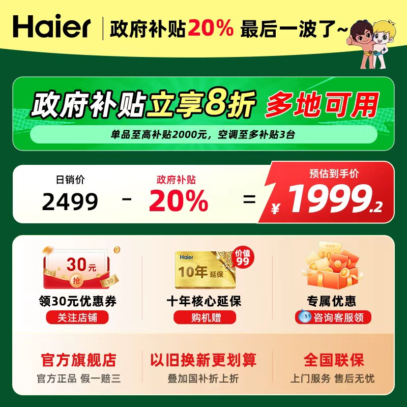 国补20%海尔空调净省电小红花官方1.5匹新一级能效挂机35E1旗舰店