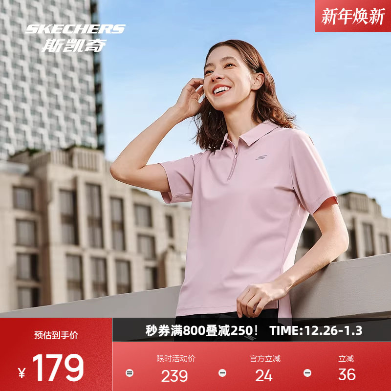 斯凯奇2025女子针织短袖POLO衫柔软亲肤凉感吸湿速干防紫外线