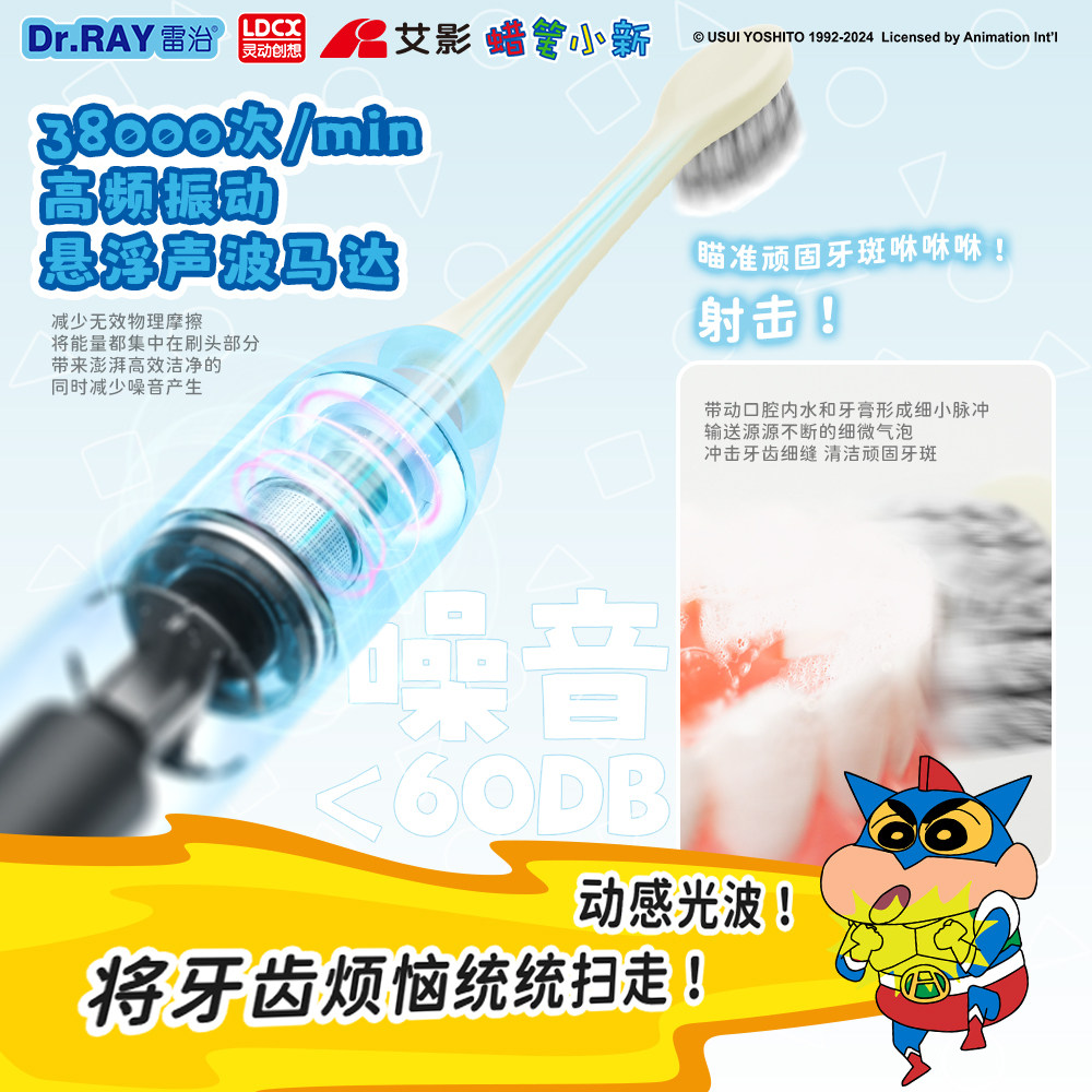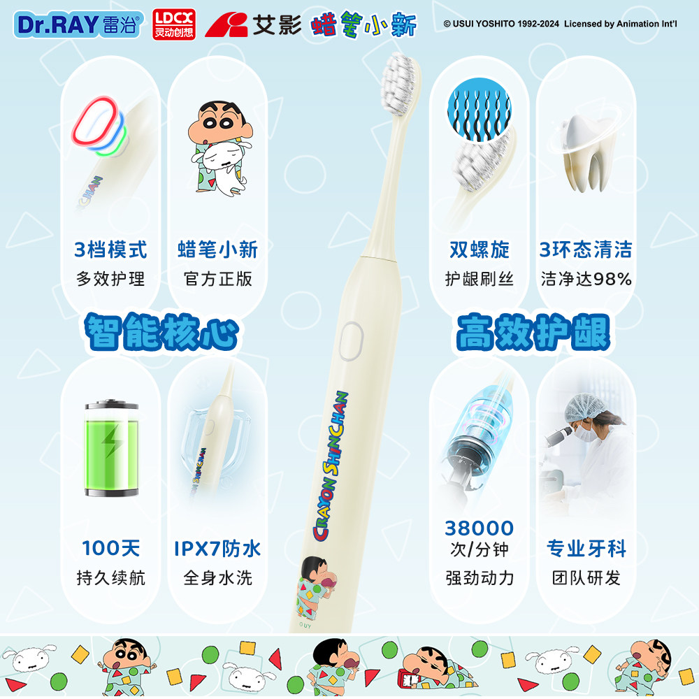 Dr.RAY雷治 蜡笔小新系列声波电动牙刷情侣成人自动软毛牙刷套装