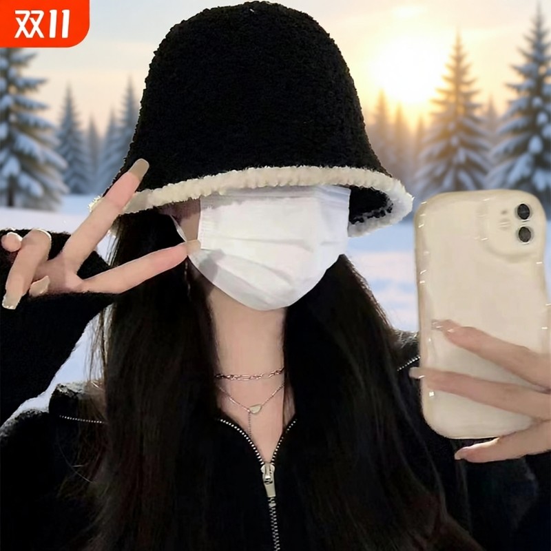 网红同款渔夫帽盆帽女士秋冬季保暖圆顶水桶帽舒适有型韩版潮帽子