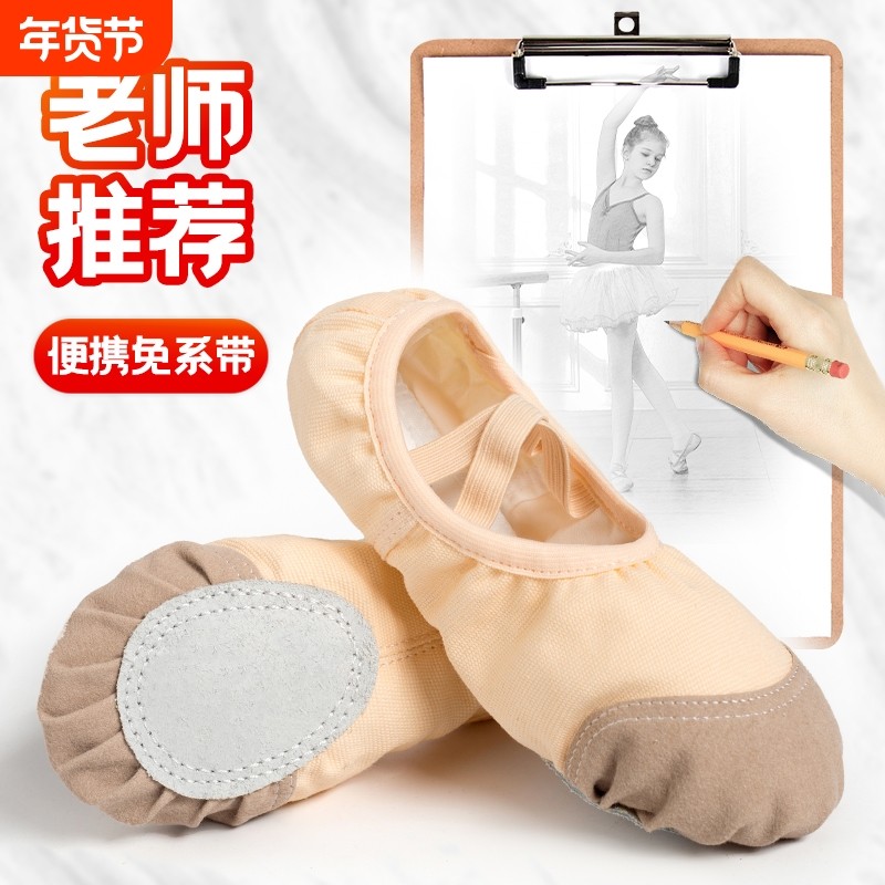 舞蹈鞋女儿童软底女童芭蕾舞练功鞋专用皮头跳舞鞋真皮肉色艺考鞋