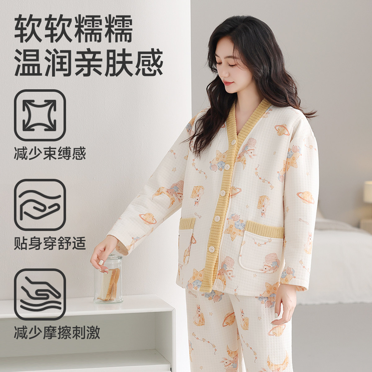 空气棉月子服秋冬产后纯棉加厚款产妇哺乳睡衣冬季孕期孕妇家居服