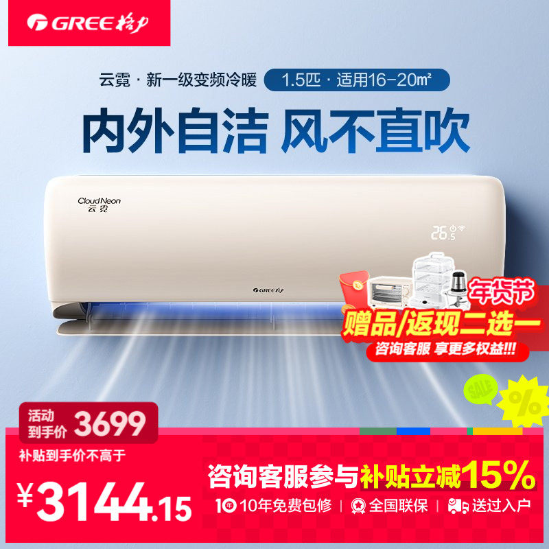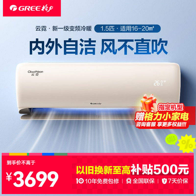 【限时补贴20%】格力空调冷暖大1.5匹挂机一级能效云霓冷静王同款
