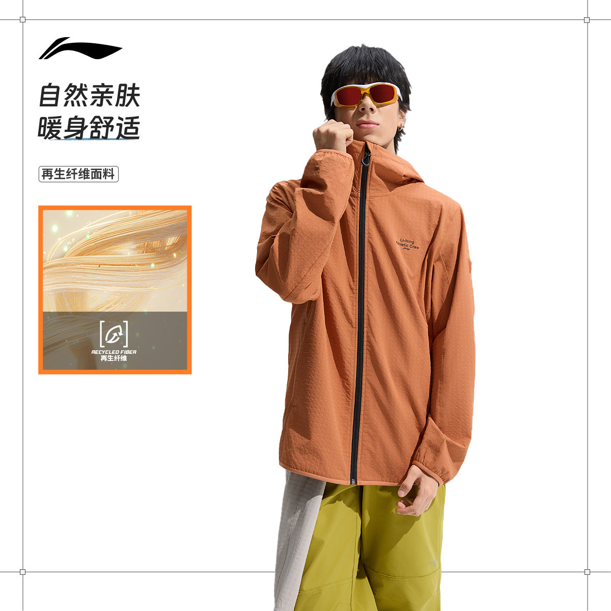 李宁运动风衣外套男士秋冬新款开衫长袖连帽加绒保暖运动服上衣男