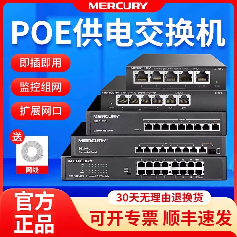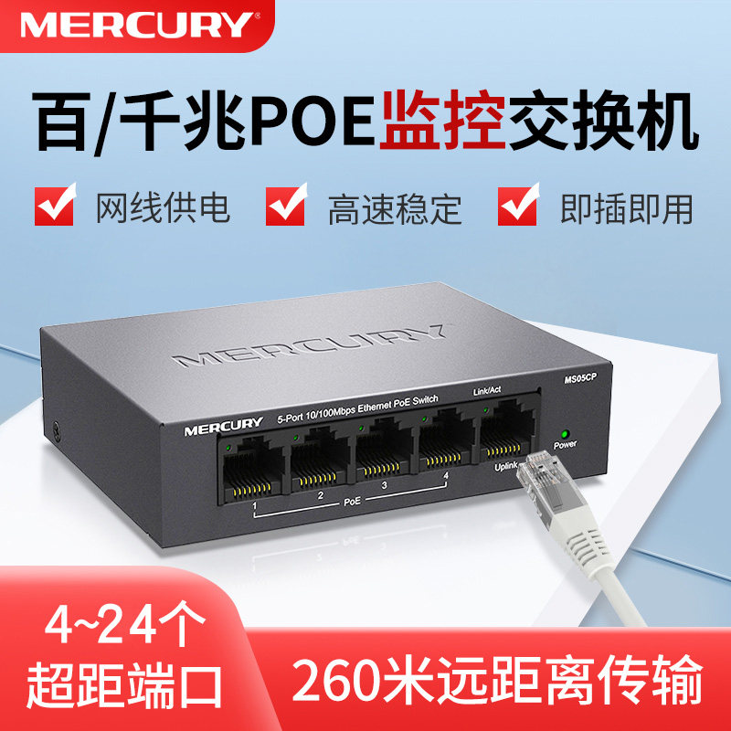 水星POE交换机千兆网络监控分线器百兆集线器 5五口8八10口16口24口26口商用交换器家用分流器盒国标48V供电