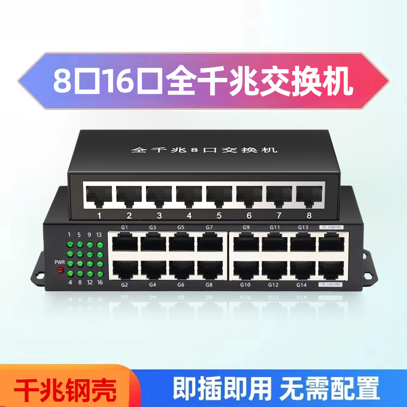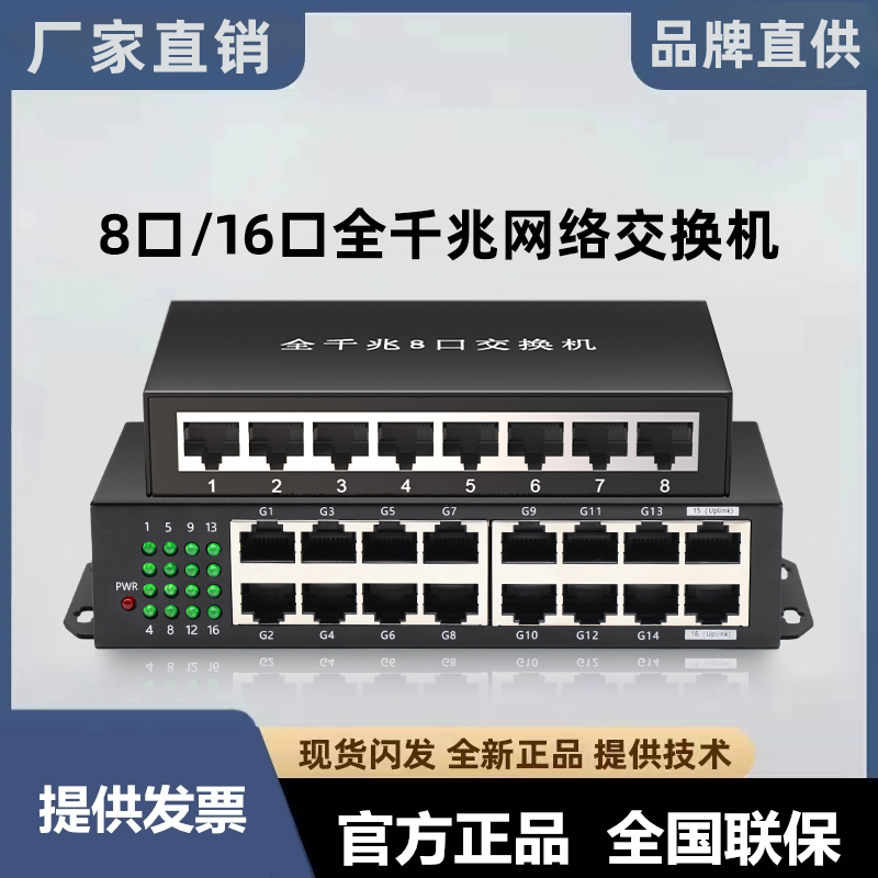 全千兆16口交换机8口企业级网络分线器10路汇聚网线转换器路由器网络分流器16口千兆交换机安防监控网口扩展