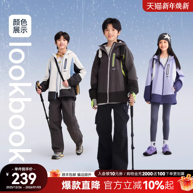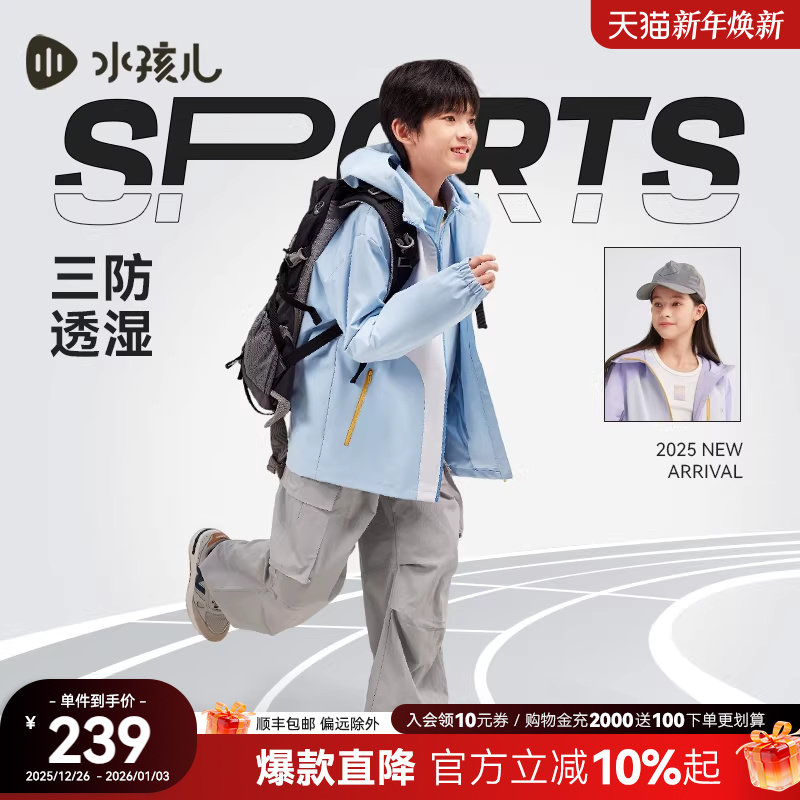 水孩儿童装外套薄2025秋季三防亲子冲锋风衣男女大童红色连帽上衣