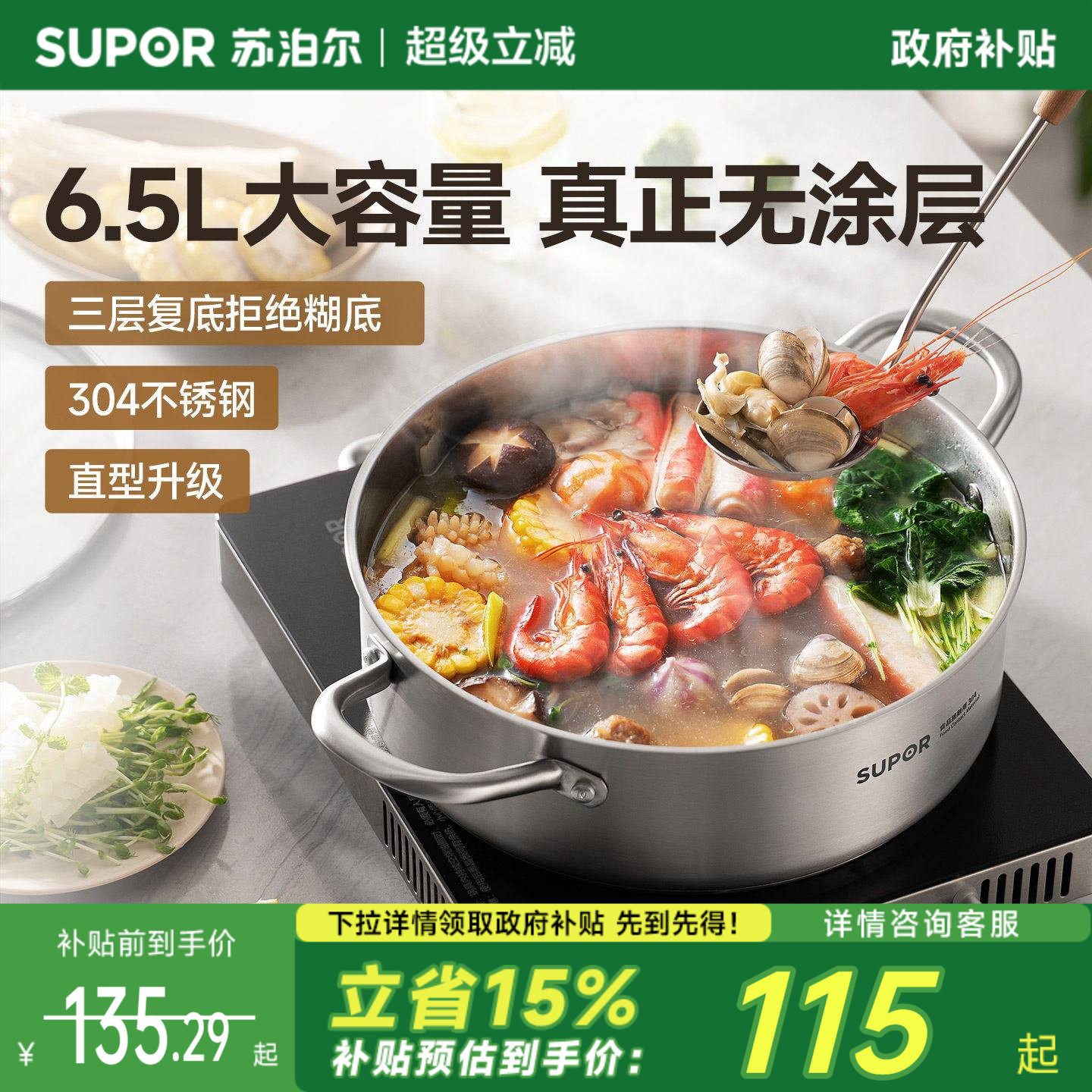苏泊尔鸳鸯锅火锅锅具家用电磁炉专用加厚304不锈钢火锅盆大容量